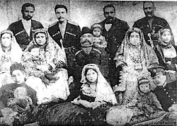Karim Khan Iravanski first married Inna Herbel, the cousin of Huseyn Khan Nakhchivanski's wife.[1] However, no child was born from this marriage.[28] On January 11, 1918, he married for the second time with Shamside Kumukovna Aydabulova, a representative of a Balkar noble family from Nalchik district.[21][15]