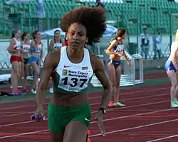 ![]() Karin Okolie (Bulgaria) at the 2015 IAAF European Championships | |||||||||||||||