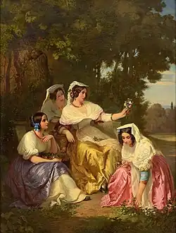 In 1831, after his grandfather's death, he moved to Munich, Kingdom of Bavaria, to attend the Academy of Fine Arts, where he studied with Peter von Cornelius and majored in history painting,[1] but left without completing his studies. After a short stay in Stuttgart, he went to Paris in 1833 to become a student of Jean-Auguste-Dominique Ingres. Four years later, when Ingres was appointed Director of the French Academy in Rome, Müller followed him and stayed for eleven years. It was there that he created his best known works. He left Italy during the Revolutions of 1848, briefly returned to Stuttgart, spent two years in Frankfurt, then settled in Paris.