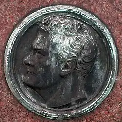 His grave is at Cemetery III of the Jerusalem and New Church in Berlin-Kreuzberg. The red granite pillar with cross-crowning has a bronze medallion with the portrait of the dead man in profile on the front, a work of Fritz Thomas.[4]
