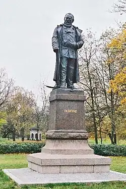 In 1897, the city of Leipzig honoured Karl Heine with a monument. The monument was melted down in the Second World War but was renewed in 2001. Many streets and one plaza are named after him. (Erdmannstraße, 1891; Karl-Heine-Strasse, 1904; Karl-Heine-Platz, et al.)