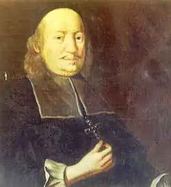 Karl II von Liechtenstein-Kastelkorn (1623–1695) was a Catholic priest and prince-bishop. In 1655 he was ordained priest in the Prince-Archbishopric of Salzburg (a part of today's Austria). Between 1664 and 1695 he served as Prince-Bishop of Olomouc in Moravia (a part of today's Czech Republic). A cultured man who employed in his Kapelle Heinrich Ignaz Franz Biber, the virtuoso violinist and composer, he was also among other things a collector of music, and maintained close ties with the imperial court in Vienna throughout his career.