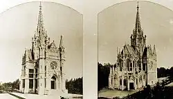 After his death, Anna erected the mausoleum-like chapel in his memory. It was built between 1885 and 1888 by Varsovian architects Edward Lilpop and Józef Pius Dziekoński.[10] It was consecrated on 1 September 1888 by Lutheran pastor Wilhelm Angerstein in the presence of Karol Scheibler, his family and hundreds of inhabitants of Łódź.[11]