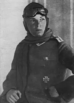 In Spring 1917, he underwent pilot's training and was posted to a Saxon two-seater replacement unit, Fliegerersatz-Abteilung 6. He transferred to Flieger-Abteilung 39, but after being injured in an accident, returned to FEA 6 in January 1918. He passed through Kest 1 on his way to posting with a fighter squadron, Royal Prussian Jagdstaffel 45. On 14 June 1918, he became a balloon buster for his first aerial victory. He downed two more enemy observation balloons in early July. On 15 July, he was both promoted to vizefeldwebel and became an ace by shooting down a pair of Spads. He would run his victory total to 12 by the end of the month, and add seven more victories in August. Three more balloons would fall to his guns in September, bring his total confirmed victories to 14 balloons and eight enemy airplanes. On 15 October, his exploits were rewarded with the Golden Military Merit Cross.[1][2]