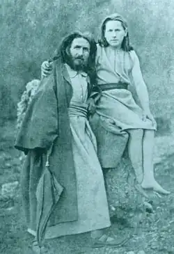 In 1880, Diefenbach lived together with Maximiliane "Maja" Schlotthauer and Magdalena Atzinger.[3] Magdalena gave birth to his son Helios – the sun – in 1880.[3] Diefenbach resigned from the institutional Church around 1881 and became a member of the Freireligiöse Bewegung (Free Religious Movement).[3] In 1882, Diefenbach married Magdalena, but only for the sole reason that unmarried mothers with their children were viewed with askance in society.[3] Immediately after the wedding, Diefenbach withdrew to Hohenpeißenberg in the Bavarian Alpine Foreland, where his first revelation allegedly happened to him on 10 February 1882 during the sunrise: his transformation and calling to become a prophetic reformer.[1][3]
