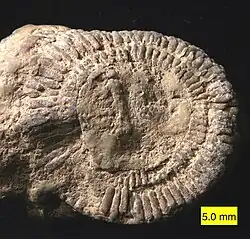 In the course of his long and active career he engaged in much palaeontological work: he studied the fauna of the Triassic and in 1861 introduced the term Rhaetic for the uppermost division of that system; he supported at first the view of the organic nature of Eozoon canadense (1866 and 1876), he devoted special attention to Foraminifera, and described those of the Eocene strata of the northern Alps (1868); he dealt also with Receptaculites (1875) which he regarded as a genus belonging to the Foraminifera.[1] In 1875 and 1878 he published "Über die Beschaffenheit des Steinmeteoriten vom Fall am 12. Februar 1875 in der Grafschaft Iowa Nordamerika"[4] and "Über die in Bayern gefundenen Steinmeteoriten",[5] respectively, both important qualitative and quantitative essays on the physical properties of meteorites.
