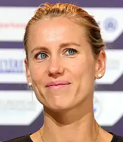Karla Borger (born 22 November 1988 in Heppenheim) is a German beach volleyball player. She won a silver medal at the 2013 World Championships alongside her teammate Britta Büthe.[1] In 2014 they won the German Championship. At the 2016 Summer Olympics in Rio de Janeiro, she competed in women's beach volleyball with teammate Britta Büthe. They were defeated by the Brazilian team of Larissa França and Talita Antunes in the round of 16.[2] After Büthe quit professional beach volleyball in 2016, Borger teamed up with Margareta Kozuch until 2018. When Kozuch decided to play with Laura Ludwig, she formed a new team with Julia Sude and won the German Championship in 2019.[3] The team qualified for participation in the Beach volleyball at the 2020 Summer Olympics.