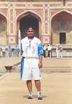Karnam Malleswari (born 1 June 1975) is a retired Indian weightlifter. She became the first Indian woman to win a medal at the Olympics in 2000, and was India's only medal in the 2000 Olympics. In 1994, she received the Arjuna Award and in 1999, she received the Khel Ratna award, India's highest sporting honour, and the civilian Padma Shri award.