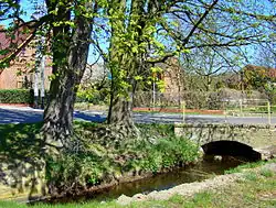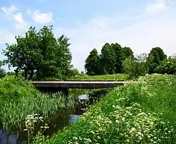 The river flows out of Karpino Lake. Flowing into the Eastern direction through the villages Karpin, Drogoradz and after around 2.5 km flows into the estuary of the river Oder.