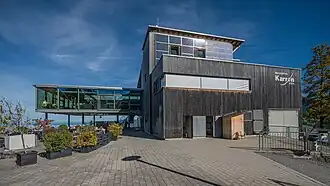 A cable car goes to the top of the mountain. The summit station includes a panorama restaurant with an expansive view of Switzerland and Germany and the Rhine Valley.