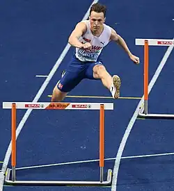 Warholm has won gold for the 400 m hurdles at the World Athletics Championships in 2017, 2019 and 2023, as well as the 2018, 2022, and 2024 European Athletics Championships. He is the first athlete ever to win three 400 m hurdles events at the World Championships.[4] Warholm is a two-time Diamond League 400 m hurdles champion. In 2021, he was voted World Athletics Male Athlete of the Year.