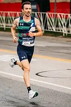![]() Kasey Knevelbaard competing in the 2025 USATF 5k road championships in Indianapolis | |||||||||||||||