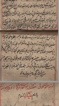 ^Kitab was composed by Mulla Hakim Azim in 1253AH/ 1837 CE. See,Sajjid, Maqbool (2000). Kuliyat-i Hakim Azim wa Munshi Muhammad Yusuf (in Kashmiri). Srinagar: Imam Hussein Research & Publishing Centre. p.22.