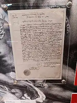 The island was not well fortified, apart from a few guns placed at the coast to cover the likely landing place.[9] The Egyptian commanders furthermore contrived to deceive the islanders: after sailing past the island exchanging heavy artillery fire for two days with the defenders—on the 19th alone the Egyptians fired over 4,000 shots—the fleet moved towards the northern tip of the island. There it launched 18 great boats, pretending that it would make landing there, covered by much musket fire; while 24 boats with 1,500 Albanians landed behind the village of Agia Marina under cover of night on 19 June.[10][11] The bulk of the population lived in the four mountainous villages around the main town, which were now between two hostile forces. Hüseyn Bey issued a call for surrender, rejecting requests for time to consider the proposal. Finally, the village elders chose to submit; this did not prevent Hüseyn Bey from executing many of them later.[9][12][13] A number of Kasiots managed to escape by sailing to Karpathos.[1]