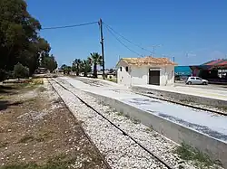 Katakolo railway station (Greek: Σιδηροδρομικός Σταθμός Κατακόλου, romanized: Sidirodromikós stathmós Katakolo) is a railway station that serves the town of Katakolo, Elis in Western Greece, Greece. Located in the centre of Katakolo, close to the harbour and ferry port, the station was opened in 1882 by the Pyrgos-Katakolo Railway Company (SPK), (now part of OSE). Today TrainOSE operates 3 scheduled daily Regional trains[3] to Olympia, via Pyrgos.[4][5] The station is unstaffed[6] however there are waiting rooms available. It was the most western active station on the OSE network.