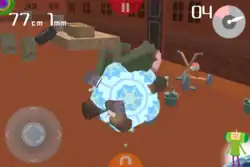 Multiple control scheme options were available. In the "Acceleration Sensor" scheme, the accelerometer of the gaming device was utilized, and Prince was controlled by physically tilting the device. The "Double Virtual Pad" scheme, where dual virtual sticks were presented on-screen, was the most similar to the traditional style of controls featured in the original Katamari Damacy game. The third control scheme, "Single Virtual Pad", which was chosen by default, was the same as the previous scheme in that it also utilized multi-touch, but only a single virtual stick was displayed on-screen. Regardless of the controls chosen, the option to quickly turn Prince around was achieved by tapping an on-screen button located at the bottom of the display.