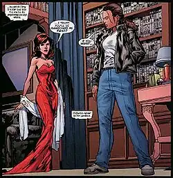 Similar to her cousin Bruce, Kate uses her status as a rich socialite to disguise her vigilante activities; however, unlike Bruce, whose playboy persona is usually depicted as a facade,[78] Kate enjoys her public lifestyle, a trait which Bruce himself admires.[79] Naturally confident and flirtatious, Kate adapted such characteristics for intel-gathering purposes as a vigilante.[31][80]