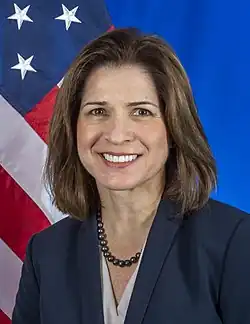A career diplomat, she had served as the deputy ambassador in Athens, and was the designated representative of the U.S. mission to the Organization for Security and Cooperation in Europe in Vienna.[11][6] Addressing the United States Senate during her confirmation hearings, she averred her continuing commitment "to strengthen cooperation with (North) Macedonia as a strategic partner." She highlighted that the Prespes agreement surmounted an historic hurdle, so its implementation is regionally important.[11] Upon her appointment, acting Assistant Secretary of State Philip Reeker saw her appointment as a harbinger of "a new era of bilateral cooperation, as friends and allies of the Republic of Macedonia."[6] She brought twenty-four years experience as a diplomat before being appointed to the post.[5]