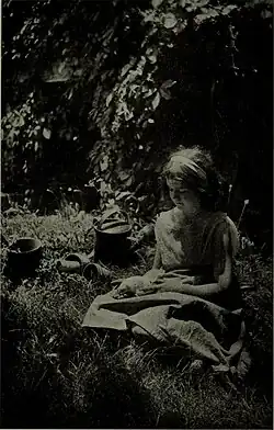 Matthews' devotion to photography was considered somewhat eccentric in the small, traditional community of Pewee Valley. She would load the large camera, tripod, and costumes into her pony cart along with relatives, neighbors, or visiting children she persuaded to serve as models. Then she would drive to preselected locations where they recreated scenes from fairy tales and story books. Kate's niece, Lillian Fletcher Brackett, described her aunt as an artist who was extremely focused and somewhat "dreamy" when her "genius was burning." When a writer from the Louisville Courier-Journal asked Kate about her technique, she said "I am very conscious of light... I watch it from day to day and when it is where I need it, I use it."