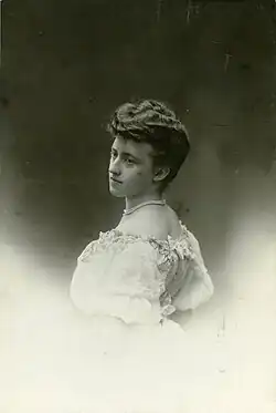 Katharine was married to tobacco tycoon R.J Reynolds from 1905 to 1918. The two had four children together: Richard Joshua Reynolds Jr. (April 4, 1906 - December 14, 1964), Mary Katharine Reynolds (August 8, 1908 - July 17, 1953), Nancy Susan Reynolds (February 5, 1910 - January 1985) and Zachary Smith Reynolds (November 5, 1911 - July 6, 1932).[21][25] Katharine struggled with heart problems throughout her life, possibly due to an undiagnosed rheumatic fever. As a result, her pregnancies were dangerous. For the birth of Nancy a trained nurse was hired on to care for Katharine and the baby. Nancy would remember later in her life that "Mother liked her so much, and we all got along so well, that she stayed on [after the birth]. She was a graduate nurse. We called her by the nickname “Bum.” Her name was Henriette van den Berg, and I suppose Bum is about as close to van den Berg as children can get...She was a very important member of our household…. Oh, she bossed my mother. She called Mother ‘Dearie.’ But Mother was pretty strong, indeed, and I think a little jealous of Bum sometimes, because she did have so much influence over us. But Mother had so much to do that she couldn’t have done it alone, it was really too much for her.”[26]