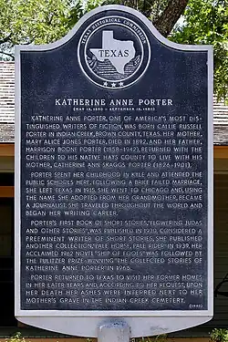 26. ^ "THC-Katherine Anne Porter". Archived 2016-03-04 at the Wayback Machine Recorded Texas Historic Landmark (Texas Historical Commission). Retrieved: February 22, 2011.