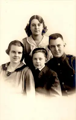 Katharine graduated from Madison's high school in June 1913 and entered the University of Wisconsin-Madison that fall. She attended college there until 1917, majoring in home economics and physical education, but did not take a degree. Between June and September 1917, she served as a swimming instructor at the University of Chicago. Her next job (September 1917 to June 1918) was as a physical education instructor at public schools in Tulsa, Oklahoma. Brief tenures of employment in physical education followed at Chico State Teachers College in Chico, California (the summer of 1918), the University of Chicago (August–September 1918), the Summit School for Girls in St. Paul, Minnesota (September 1918-June 1919), and again at the University of Chicago (the summer of 1919).[2] Between September 1919 and June 1921, she taught physical education at The Principia, a private high school and college in St. Louis, Missouri. During this time, she also served as a coach at Camp Chocora in Tamworth, New Hampshire (the summer of 1920). The summer of 1921 found her as a swimming coach at Camp Minewonka at Three Lakes, Wisconsin.