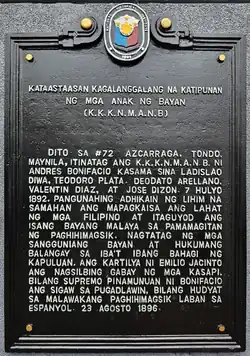 1. ^ a b c "Andres Bonifacio and the Katipunan". National Historical Commission of the Philippines. March 25, 2013. Archived from the original on April 17, 2014.
