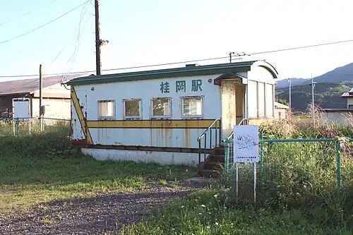 Katsuraoka Station (桂岡駅, Katsuraoka-eki) was a railway station on the Esashi Line in Kaminokuni, Hokkaido, Japan, operated by Hokkaido Railway Company (JR Hokkaido). It opened in 1936 and closed in May 2014.