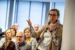 In 2019, she was among the candidates rumoured to be running for the leadership of the Reformist Movement.[6] In the end, she chose not to run, endorsing the campaign of Georges-Louis Bouchez instead.[7] In October 2019, she proposed a bill to extend the period in which it abortion is legal in Belgium from until 12 weeks after conception to until 18 weeks.[8][9]