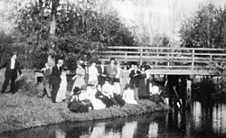 In 1845 James J. Crawford received a land grant that included this area. The hot summers and thick clay soil made it difficult to attract settlers to the area.[12] Freed slaves and their families including Thomas (Mary) Robinson and Milto McGinnis, along with Mr. Crawford, Peter Black, and John Sills were the only recorded residents of Cane Island in 1875.