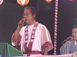 Kawachi Ondo (河内音頭) is a kind of Japanese folk song that originates from Yao City in the old Kawachi region of Japan, now part of modern-day Osaka Prefecture. This song's style and melody are said to have evolved from another folk song called Gōshū Ondo from Shiga Prefecture, known as Goshu in earlier days. Kawachi Ondo accompanies the Bon dance (also known as Bon Odori) in the Osaka/Kawachi region of Japan, however, this song has recently grown in popularity and is often played at other major Bon dances, even in Tokyo. Emmanuelle Loubet writes that Kawachi Ondo has long had a grassroots vitality and that the Kawachi area's association with the working class, yakuza, street fights, rough language, and Buraku communities has likely contributed to the form's close links to community practice rather than being "pasteuriz[ed] for consumption by the masses."