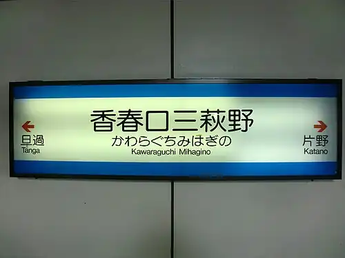 1. ^ "香春口三萩野駅 | 路線情報 | 北九州モノレール". www.kitakyushu-monorail.co.jp. Retrieved 23 February 2022.