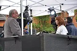 Ofcom rejected any complaints over Sky News coverage of the event, despite receiving 2,800 complaints.[28] Burley was subsequently heckled by protestors while reporting from College Green, who continuously chanted "sack Kay Burley", prompting Burley to say "Lots of demonstrators shouting 'fair votes now' – not sure what they mean by that" and "They don't like The Sun, they don't like us, they don't like Rupert".[30] In September 2010, commenting on the News International phone hacking scandal, part of an exchange between Labour MP Chris Bryant and Burley went viral, whereby Burley asks Bryant to cite information claiming that phone hacking was "endemic" in other newspapers. Bryant did, accusing Burley of being "a bit dim"[31] and saying:
