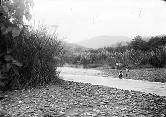 ![]() Kayeli men at the Lumaiti riverbank in Buru, 1892. | |