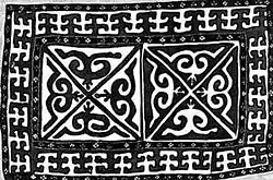 - S. M. Dudin identifies four features of Kazakh ornamentation: equality of background and pattern, diversity of motifs of both pattern and background, limited color range of the ornament, and the presence of top and bottom in ornamental compositions.[4]