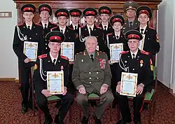 After the creation of the first nine Suvorov schools in the early 1940s, the State Defense Committee adopted a resolution of June 4, 1944 to organize an additional six schools, including Kazan. On June 20, 1944, the Commander of the Volga Military District issued a directive on the formation of the Kazan Suvorov Military School. The temporary formation point was in the Admiralty suburb of Kazan, on the territory of the Zhytomyr Military Infantry School. The academic building was completed on September 30, 1944, which would later hold four companies of 100 people each. The first bell rang on October 2, 1944, with the first set of boys representing 14 nationalities from 19 regions and 8 autonomous republics of the center of the country. In 1949, 5 years later, the school's first graduation parade was held, when its first graduating classes were presented diplomas for completing secondary education. In 1973, the school was awarded by the Military Council of the Volga Military District for its success in the military-patriotic education of its students with the prestigious Order of the Red Banner, in celebration of the 30th anniversary of the Suvorov Schools. The school has also repeatedly won the Honor Prize of the Ministry of Defence of the Russian Federation, and has received a certificate of merit by the Commander-in-Chief of the Russian Ground Forces.[2][3]