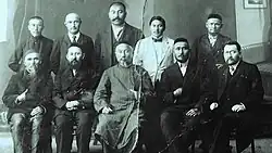 Munaitpasov (Center, back row) along with other famous Kazakh intellectuals like Akhmet Baitursynov and Mirjaqip Dulatuli in Omsk in 1918