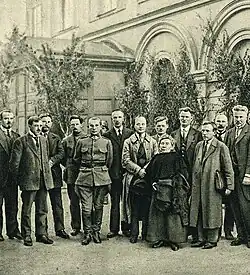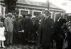 On 7 June 1926, Grinius was elected President of Lithuania. During his tenure, Grinius enacted a non-aggression pact with the Soviet Union, by which it recognized Lithuanian rights to the Vilnius region. Savings were also allocated to road construction, industry, education, and cultural affairs. Martial law and restrictions on censorship were abolished. The country also began trade negotiations with Germany and the Soviet Union.[23] As president, Grinius did not use state transportation, preferring to travel to villages in passenger cars. When family would inquire about his choice, Grinius would respond that the Lithuanians live too poorly.[24] However, Grinius's democratic reforms were met with disapproval from conservatives. Kazys Škirpa's army reforms caused resentment from the officers as well.[25]