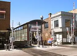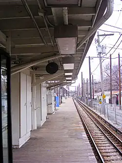 This station was the site of a fatal 1977 accident involving an intoxicated Korean immigrant who was electrocuted by the third rail while attempting to urinate on the track. The CTA was found 50 percent responsible and the $1.5 million judgment against them was eventually affirmed by the Illinois Supreme Court in 1992.[4] The majority opinion, signed by Justice Charles E. Freeman, noted that there was evidence before the trial court that this particular stretch of railroad line is one of the only railroad lines in the United States that uses an unprotected, unguarded, and unfenced third rail.