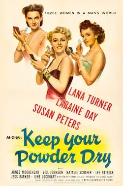 Keep Your Powder Dry is a 1945 American drama film directed by Edward Buzzell and starring Lana Turner, Susan Peters, and Laraine Day. Its plot follows three women who join the Women's Army Corps during World War II. The screenplay was written by George Bruce and Mary C. McCall, Jr.