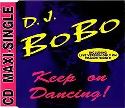 "Keep on Dancing!" is a song by Swiss artist DJ BoBo from his debut album, Dance with Me (1993). It features vocals by Turkish-Swiss singer Emel Aykanat and was released in June 1993 via various labels as the follow-up to his successful 1992 hit single "Somebody Dance with Me". The song was both co-written and co-produced by DJ BoBo with Daniel Peyer, Gutze Gautschi and Mark Wyss. It was a number-one hit in Finland and charted in Europe, Australia and Israel. "Keep on Dancing!" earned a gold record in Germany.[1]