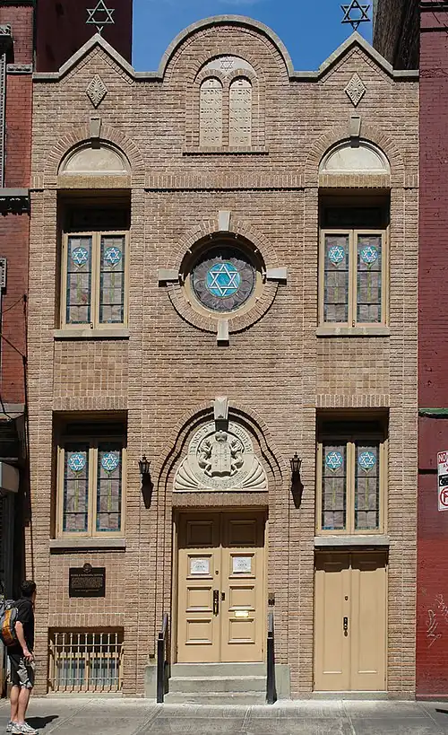 Kehila Kedosha Janina is the only Romaniote synagogue in the Western Hemisphere.[2] The congregation was founded in 1906 by Greek Jewish immigrants from Ioannina, but the synagogue itself was not erected until 1927.[5] The years from then until the Second World War were a time of prosperity for the Romaniote community on the Lower East Side: there were three rabbis in the synagogue, and on the High Holidays, there was often only standing room for synagogue services. After the Second World War, many congregants moved to other boroughs and parts of Manhattan, including Harlem, the Bronx, and Brooklyn, though these communities are no longer active.