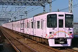 Following its refurbishment, set 9731 received a new Sanrio livery only applied to its front ends.[5] Keio states that it has discussed adorning other refurbished sets to distinguish them from unrefurbished sets.[6]