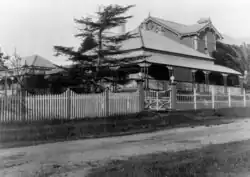 Allotment 5 on which the house is erected was first proclaimed a town lot in 1884. It was sold in that year to John MacKenzie. In 1888, Clarissa Cribb purchased the allotment, together with the adjoining allotment 4 on the corner of Roderick Street and Warwick Road. The house was lived in by her son Harry Cribb and his wife until 1895. Harry, of the local firm Cribb and Foote, was a well known sportsman and it may have been at this time that the tennis court was erected on allotment 4. In 1891, the property was transferred to Clarissa Spence, the eldest daughter of Clarissa Cribb. Subsequently the property was owned by various members of the Cribb family. From 1913 until the 1920s the house was lived in by Harry's son, Gordon and his family. Gordon was known as a naturalist and erected aviaries in the grounds. In 1919, the property was transferred to Gordon and in 1923, returned to Clarissa Spence. A photograph dated c. 1920s shows a detached building to the rear to the rear of the house. Sometime after this, a wing was added to the south east.[1]