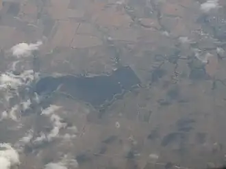 The reservoir is impounded at its northeastern end by Norton Dam.[10][11] Prairie Dog Creek is both the reservoir's primary inflow from the southwest and its outflow to the northeast.[10]