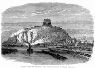 Engraving of the Befreiungshalle, or Hall of Liberation, one of Kelheim's best-known landmarks, just after its construction