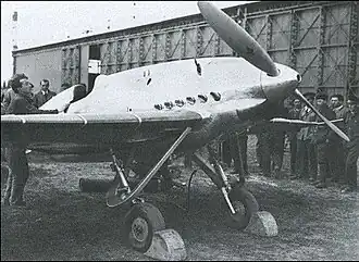 The 1933 Coupe Deutsch de la Meurthe was scheduled to start on 28 May and each aircraft had to make a flight at more than 200 km/h (120 mph; 110 kn) over a 100 km (62 mi) course in the period 8–14 May to participate.[4] The 28VD arrived at Etampes on 3 May to be flown by Vernhol;[5] it is not known how much flying it had done before that, though it was only completed a fortnight before the competition.[3] The early days of the test period were occupied with the refinement of the 28VD but on the 12–13 May it was reported to have engine problems.[4] During the early tests it was decided to set a finer propeller pitch as the initial setting was producing to much drag on the engine. When the aircraft attempted its qualifying flight on the last allowed day, this change of setting allowed the engine to overspeed. As a result, a rubber joint in the cooling system failed, releasing a cloud of vapour which temporarily blinded the pilot and forced an emergency landing in which the undercarriage collapsed and the aircraft overturned. Vernhol was thrown clear and was not seriously hurt but the 28VD was too damaged to take part in the contest for which it was built.[3][4]