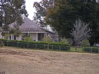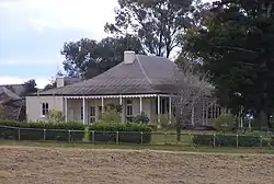 Built by Thomas Laycock junior, 1820, having received the Bringelly grant in 1818. He returned to Australia in 1817 after fighting for England in the American War of 1812. An early house of quality and rich historical associations being one of the charming country houses of the 1820s. It is well sited above Thompson's Creek and is surrounded by a beautifully landscaped garden.[16][1]