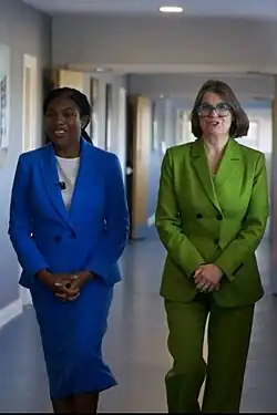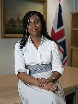 In July 2022, Badenoch resigned from government in protest at Johnson's leadership; she stood unsuccessfully to replace him in the July–September 2022 party leadership election.[10][11] After Liz Truss was appointed prime minister in September 2022, Badenoch was appointed Secretary of State for International Trade and President of the Board of Trade and was appointed to the Privy Council;[12] she was reappointed Trade Secretary by Truss's successor, Rishi Sunak, the following month, also becoming Minister for Women and Equalities.