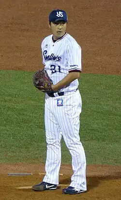 Kenichi Matsuoka (松岡 健一, Matsuoka Ken'ichi; born June 7, 1982) is a professional Japanese baseball player and coach. He pitched for the Tokyo Yakult Swallows from 2005 through 2018, and has been a pitching coach for the Swallows since the 2019 season.[1]